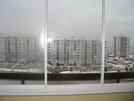 Pohľad z loggie, do zimného exterieru.