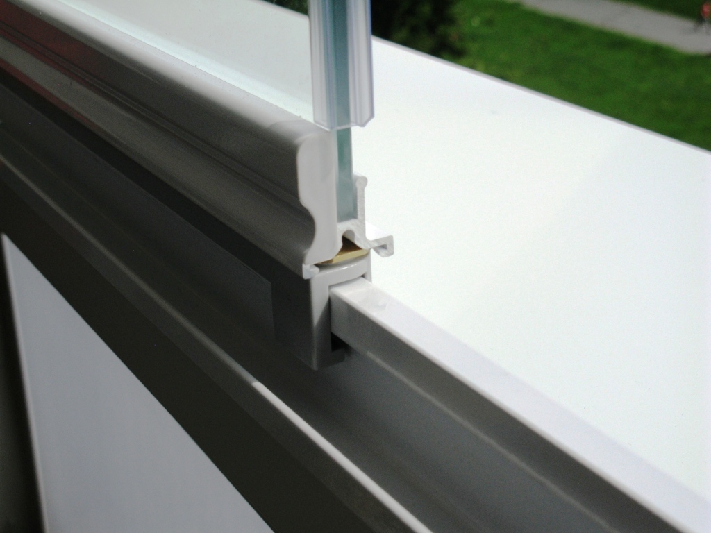 Otočný jazdec je nasunutý do spodného okenného profilu a nasunutý na spodnú koľajnicu.