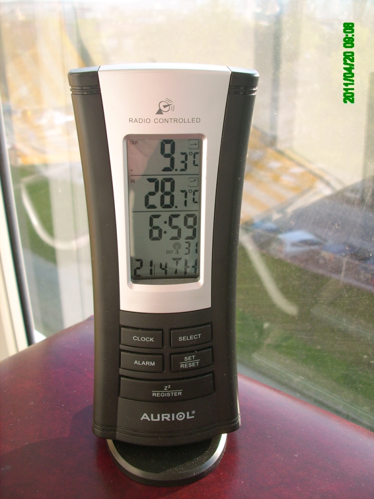 21. apríl 2011, ráno 6 hod 59 min, vonkajšia teplota 9,3°C, teplota na loggii 28,7°C. na priamom slnku.