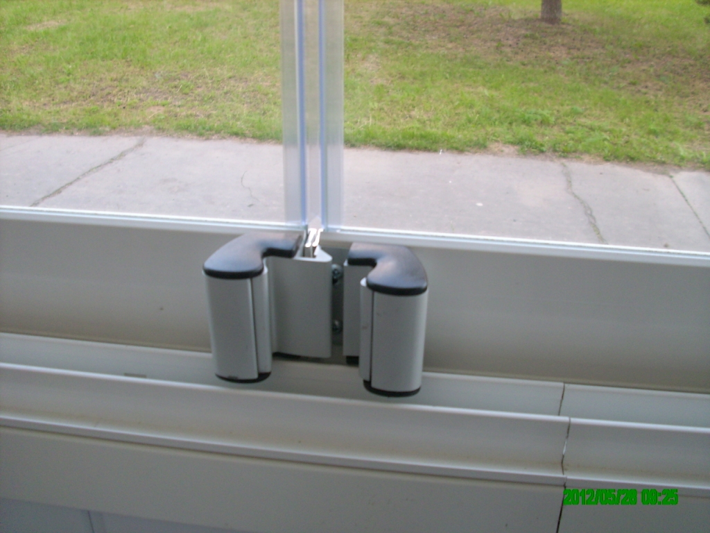 Stredná dvojica sklenených tabúl je uzamknutá dvojicou madiel.