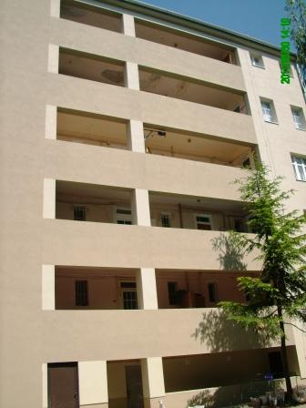 Celkový pohľad na fasádu s prevedenou termoizoláciou, pravá časť objektu. Realizácia firmy IZOLA sro Košice.